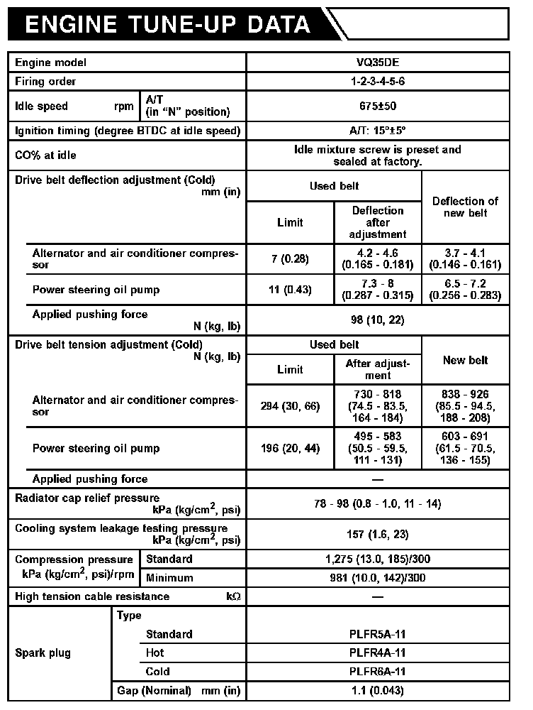 Engine Tune-up Data: