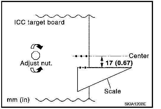 2. Adjust the sensor following the procedure on CONSULT-II (Turn manually the screw for up-down position adjustment. ICC sensor automatically adjust the right-left position).