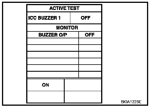 - Touch "ON" and "OFF" to check that ICC warning chime operates as in the chart.