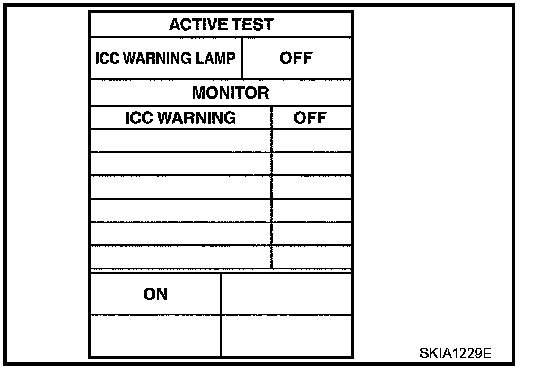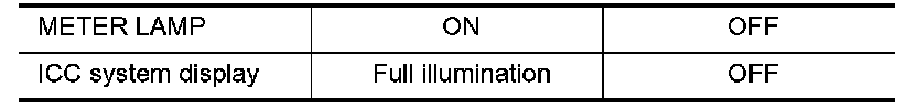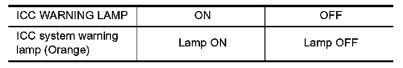 - Touch "ON" and "OFF" to check that ICC warning lamp operates as in the chart.