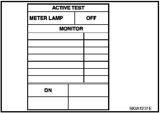- Touch "ON" and "OFF" to check that stop lamp operates as in the chart.
