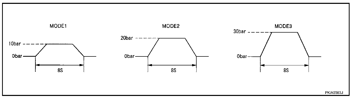 - Touch any of "MODE 1", "MODE 2", "MODE 3" to check that following operation condition is caused by operating monitor and brake pedal.