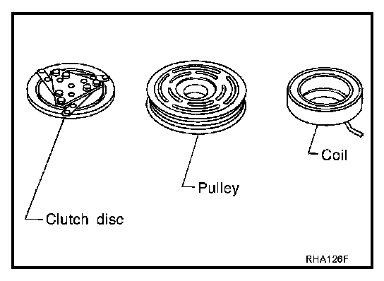 If the contact surface shows signs of damage due to excessive heat, replace clutch disc and pulley.