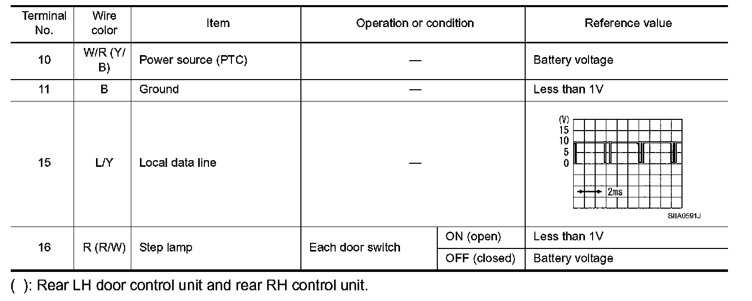 Terminals And Reference Value For Passenger And Rear LH, RH Door Control Unit: