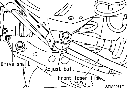 If outside the standard value, adjust with adjusting bolt in front lower link.