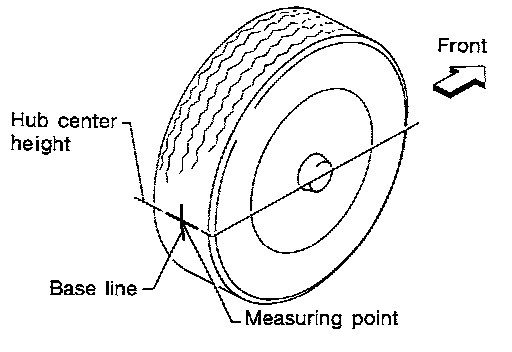3. Put a mark on base line of the tread (rear side) of both tires at the same height of hub center. These are measuring point.