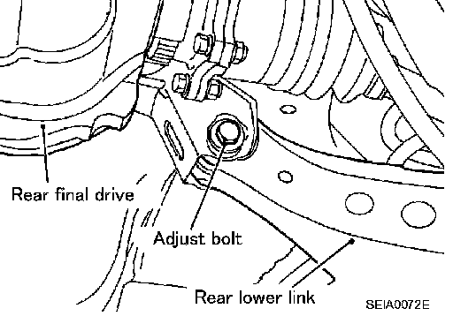 7. If outside the standard value, adjust with adjusting bolt in rear lower link.