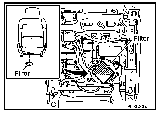 Put your hand behind front seat cushion, pull filter downward and remove it. Replace filter with a new one.