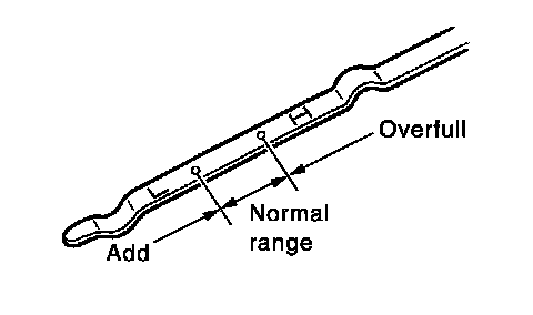 3. Insert oil level gauge and check that the engine oil level is within the range shown in the figure.