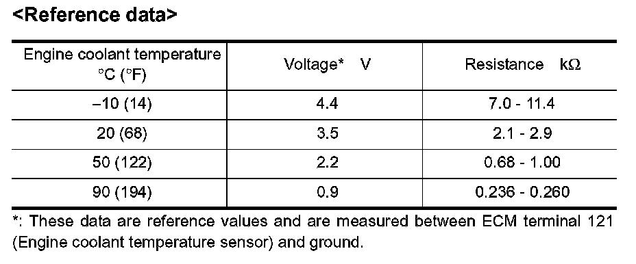 The engine coolant temperature sensor is used to detect the engine coolant temperature. The sensor modifies a voltage signal from the ECM. The modified signal returns to the ECM as the engine coolant temperature input. The sensor uses a thermistor which is sensitive to the change in temperature. The electrical resistance of the thermistor decreases as temperature increases.
