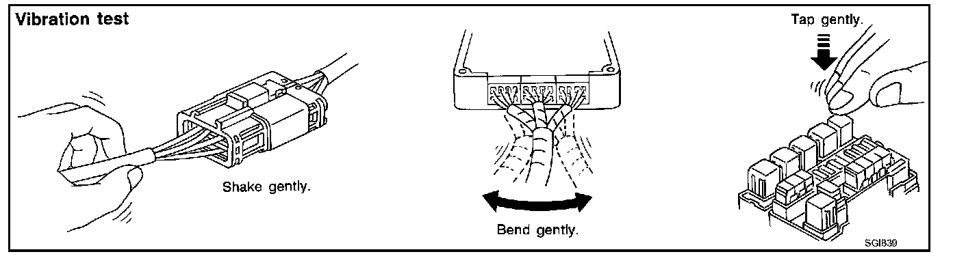 Determine which connectors and wiring harness would affect the electrical system you are inspecting. Gently shake each connector and harness while monitoring the system for the incident you are trying to duplicate.