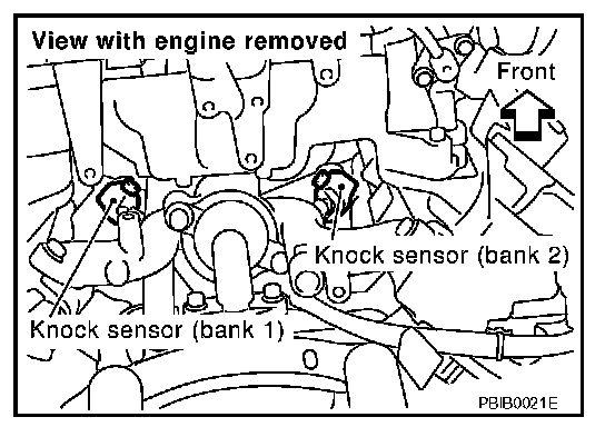 The knock sensor is attached to the cylinder block. It senses engine knocking using a piezoelectric element. A knocking vibration from the cylinder block is sensed as vibrational pressure. This pressure is converted into a voltage signal and sent to the ECM.