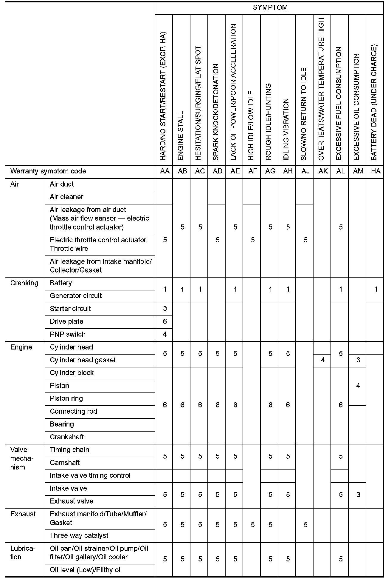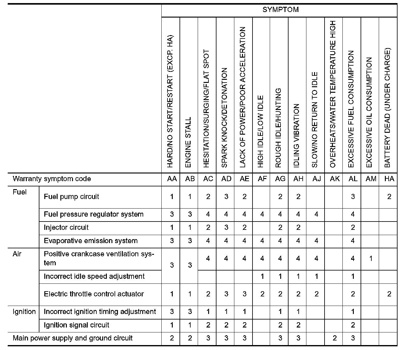 Symptom Matrix Chart System - Basic Engine Control System Part 2: