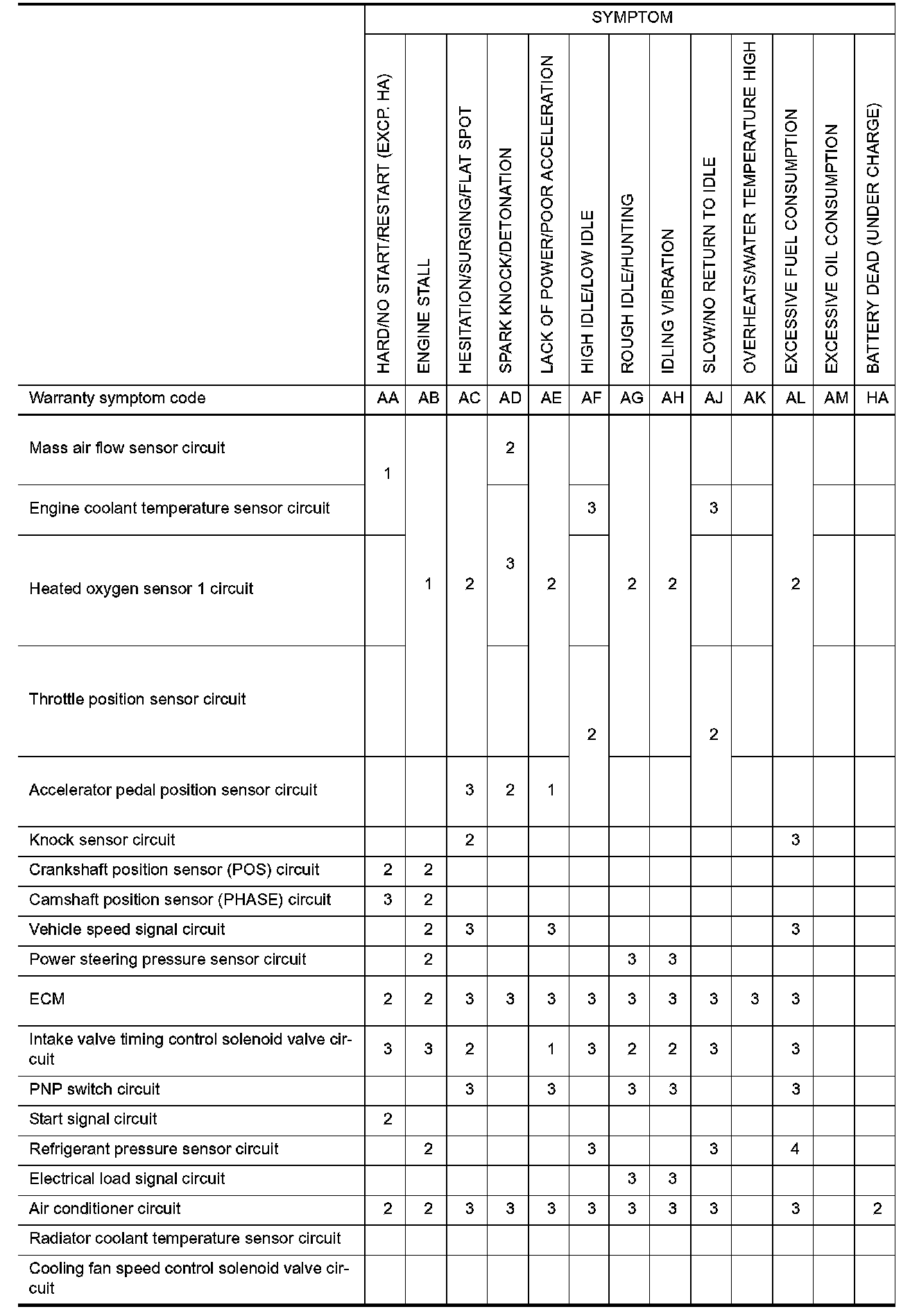 Symptom Matrix Chart System - Basic Engine Control System Part 3: