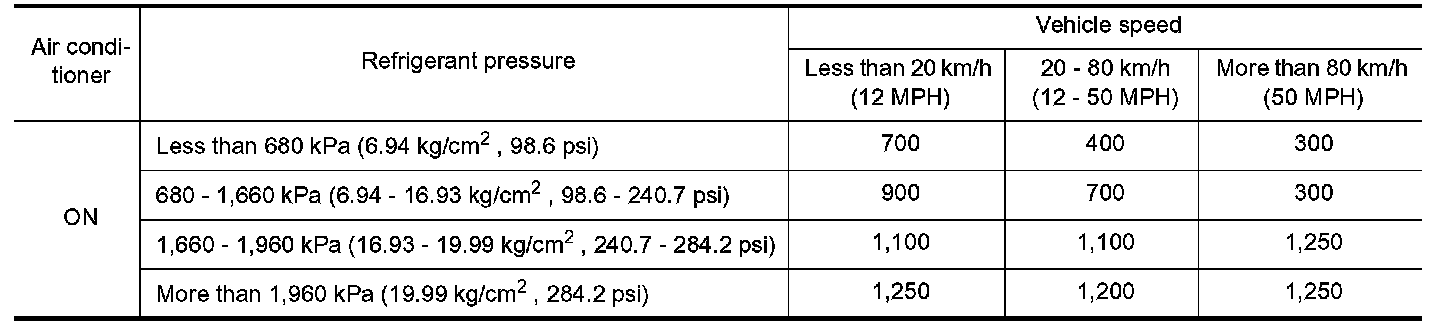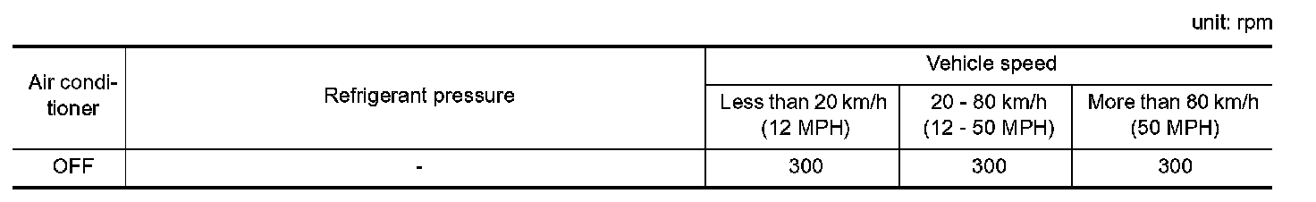 The ECM determines the target fan speed based on the basic fan speed considering the radiator coolant temperature and the engine speed. The ECM controls fan speed between 0 to 2,550 rpm.