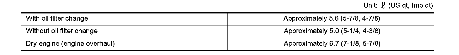 . Approximately 5.0 liters (5-1/4 US quarts, 4-3/8 Imp quarts)