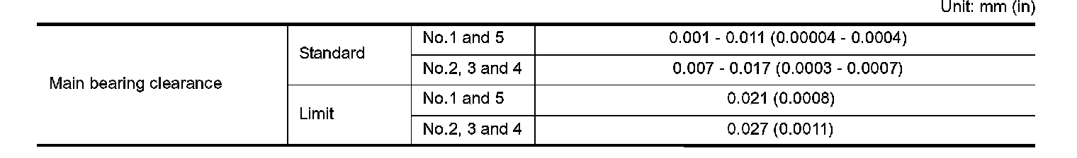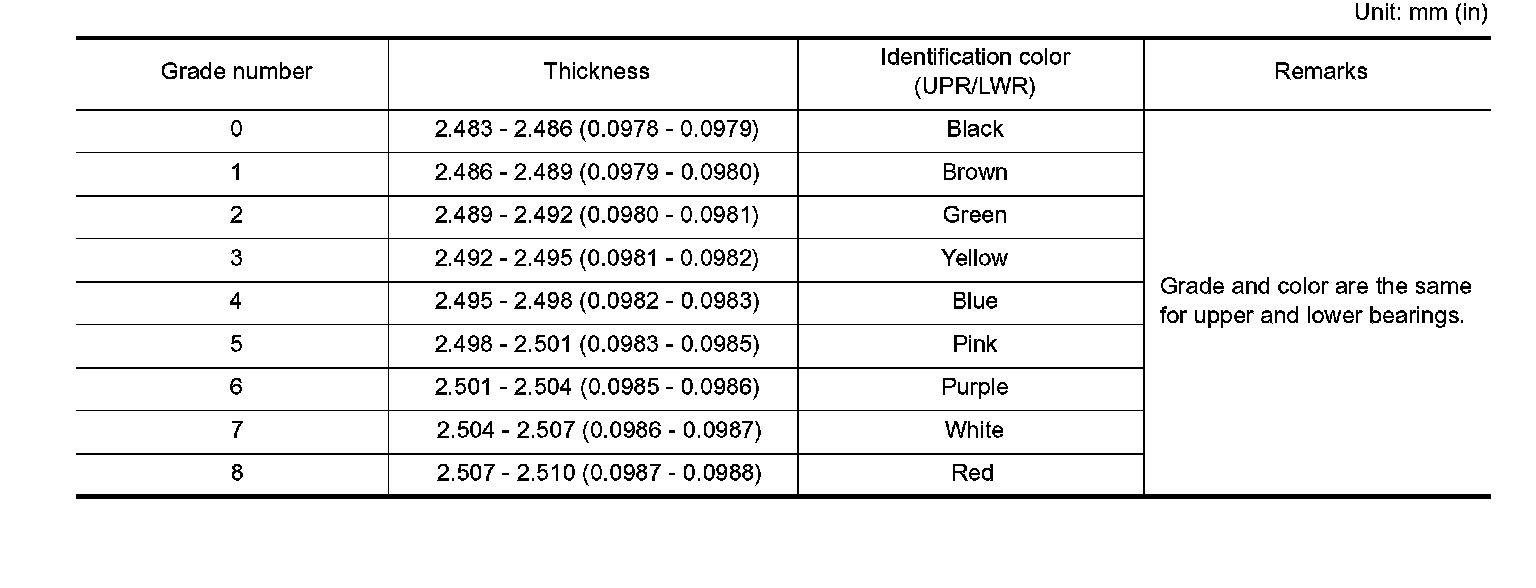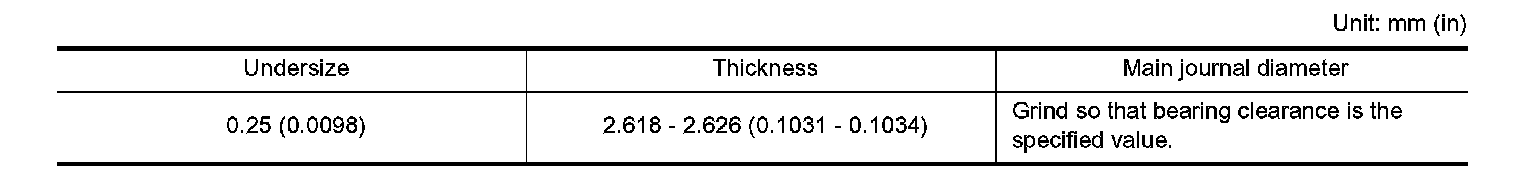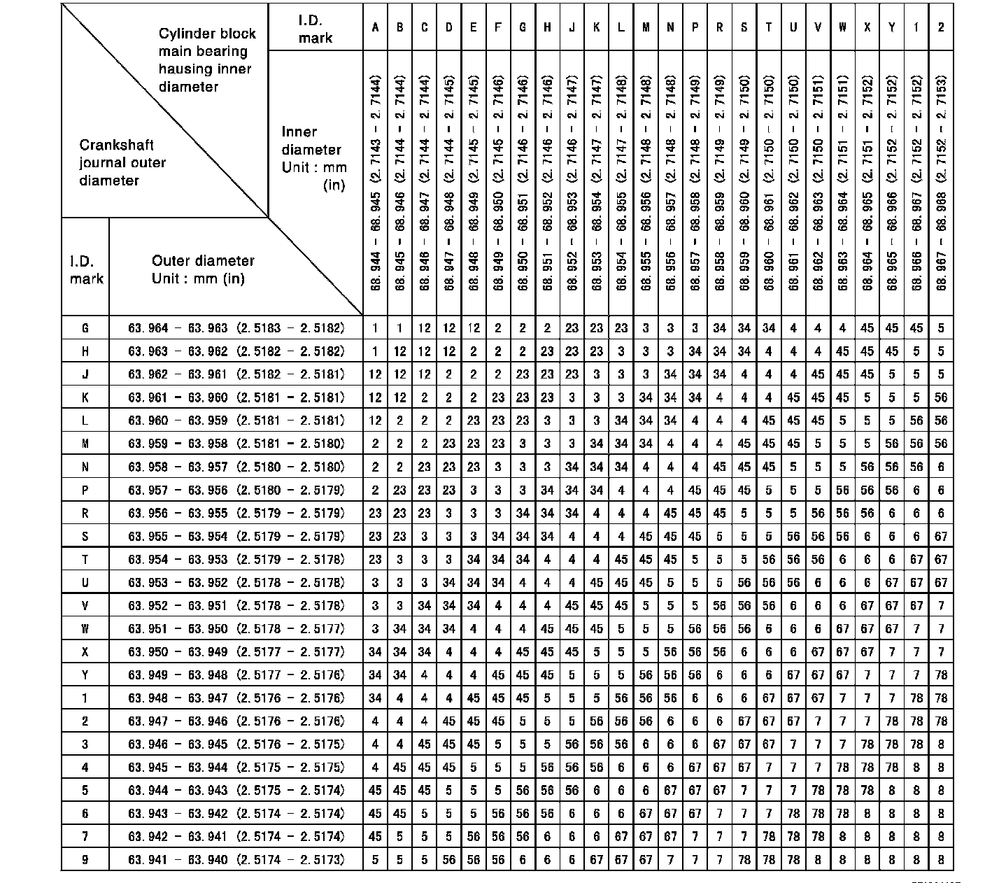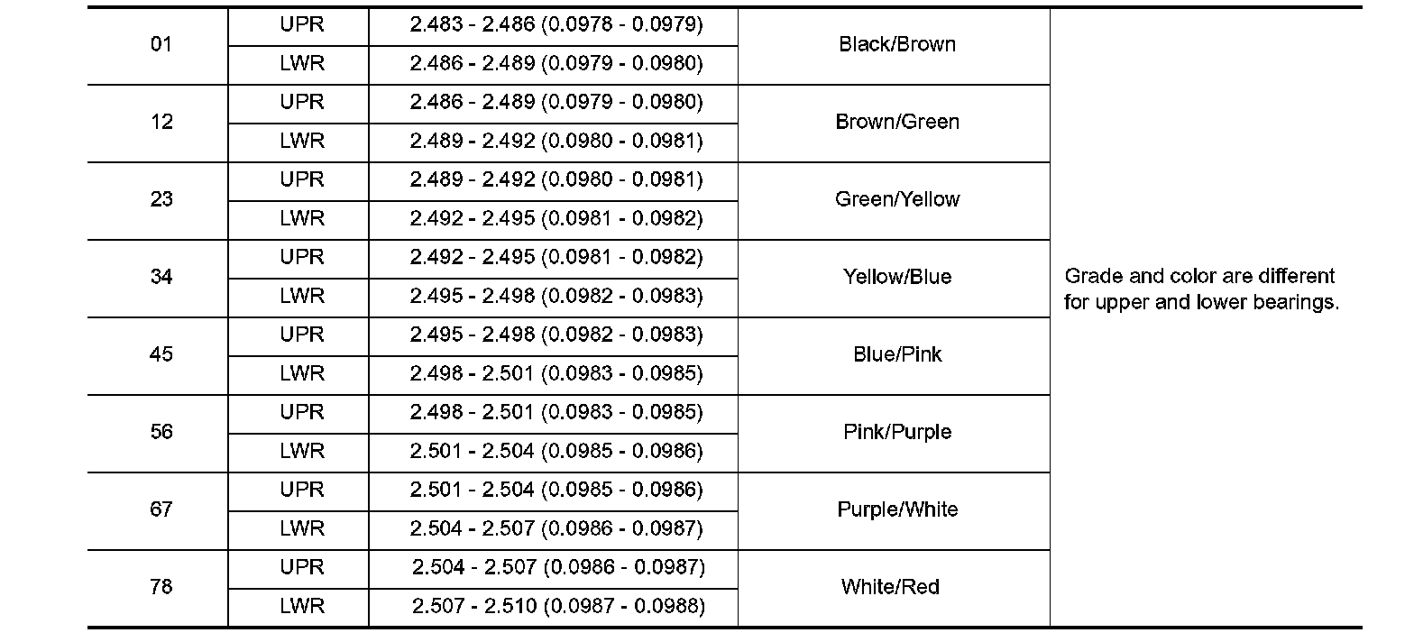 Main Bearings Selection Table (No. 1 and No. 5 journal):