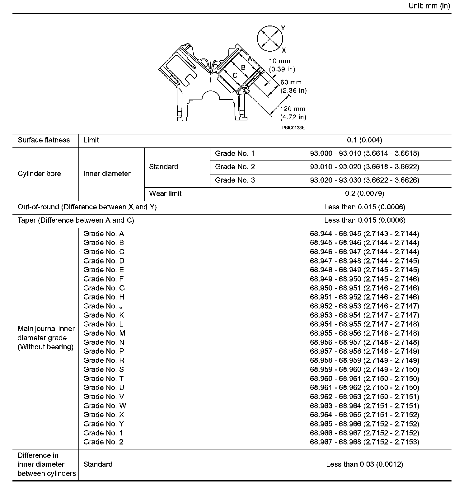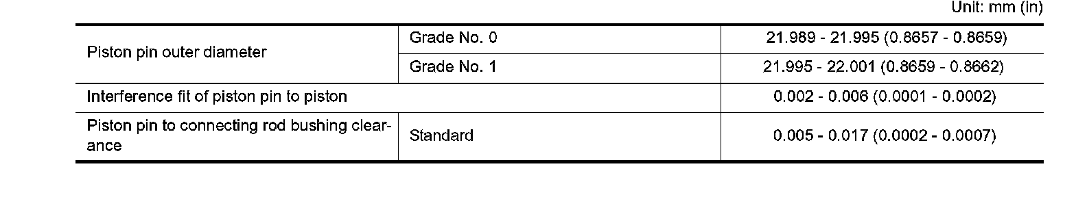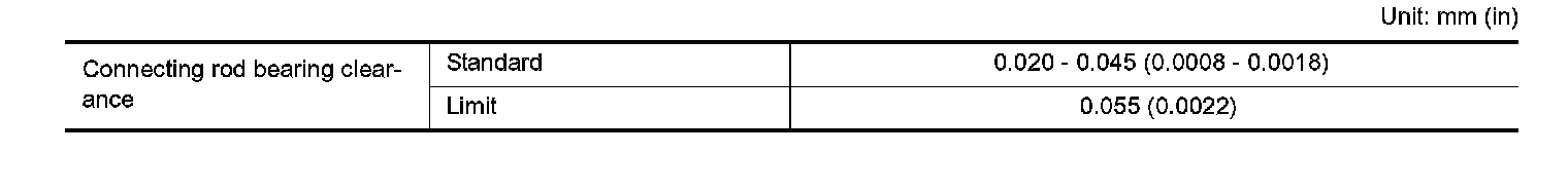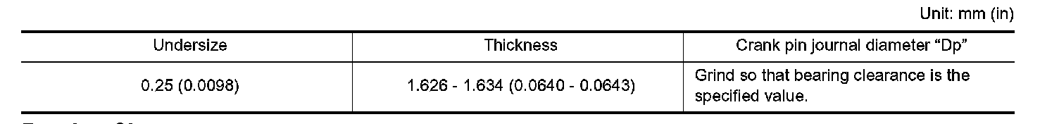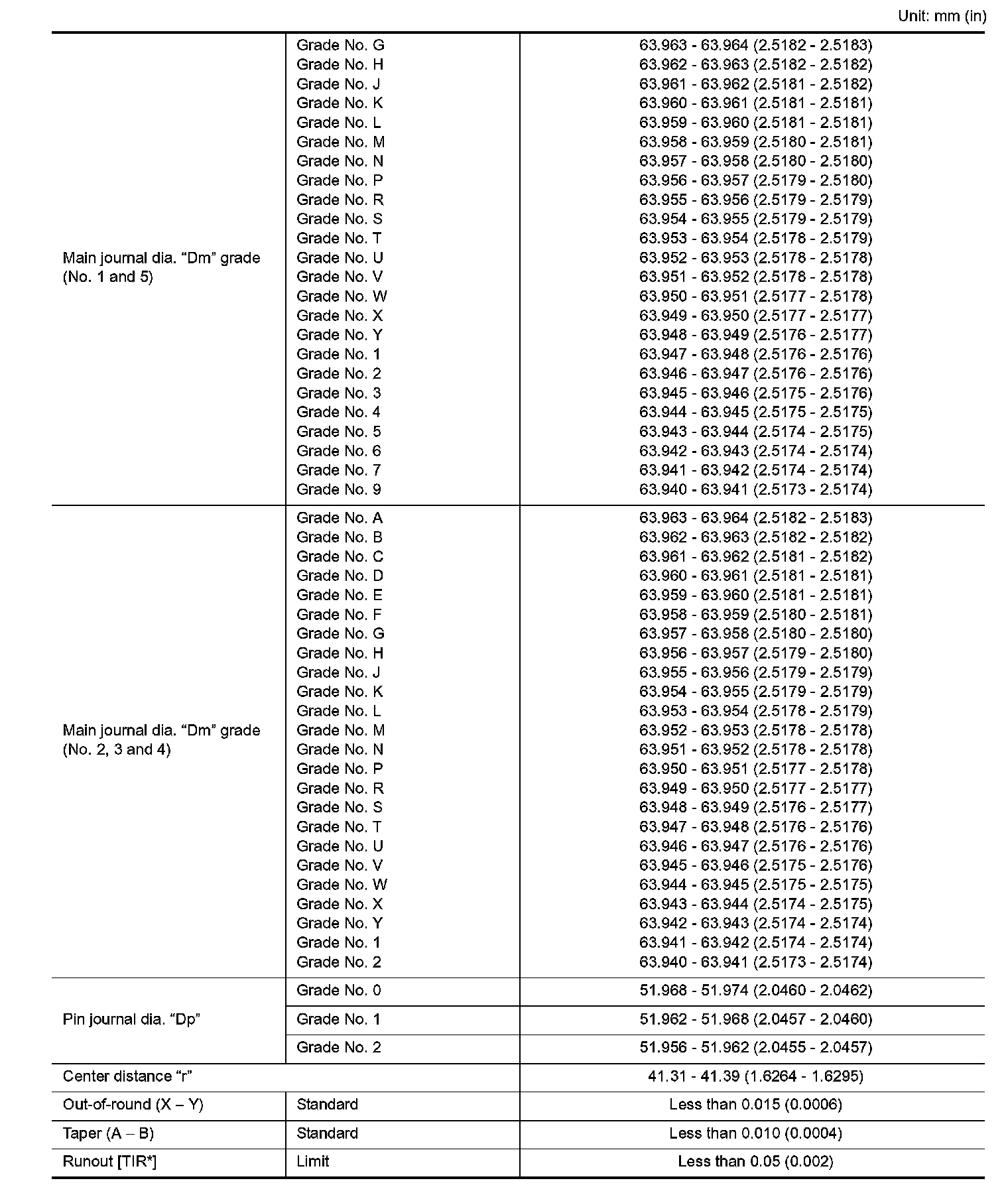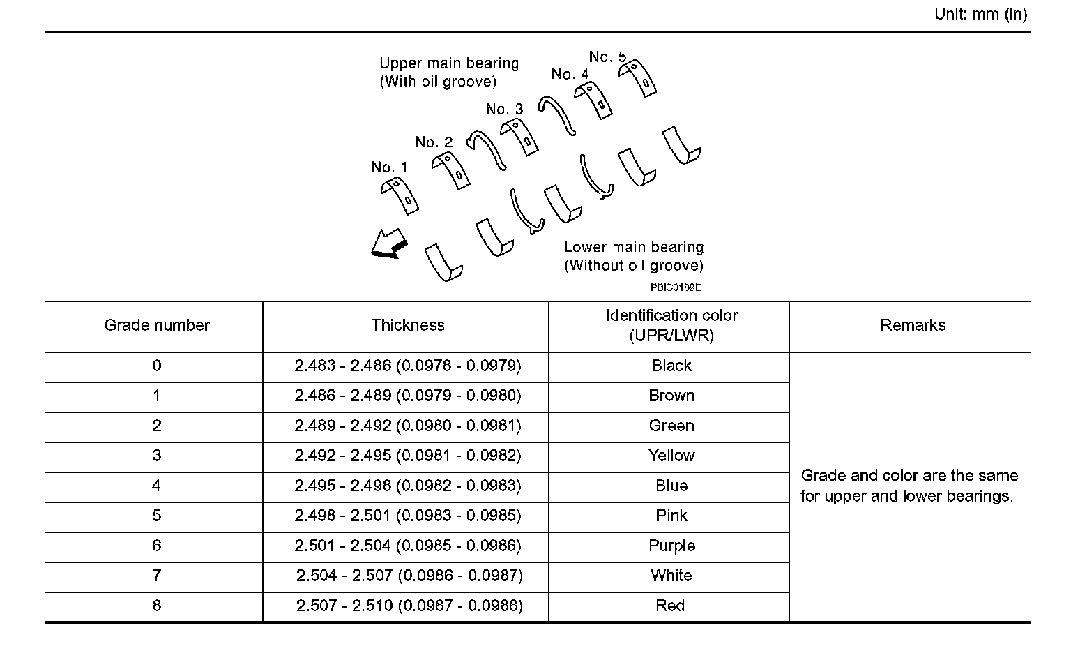 Main Bearings Selection Table (No. 1 and No. 5 journal):