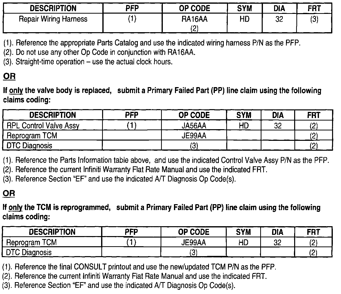 If only the connector is repaired or if the connector is repaired and the valve body is replaced (including Transmission Control Unit Reprogramming and initialization), submit a Primary Failed Part (PP) line claim using the claims coding table.