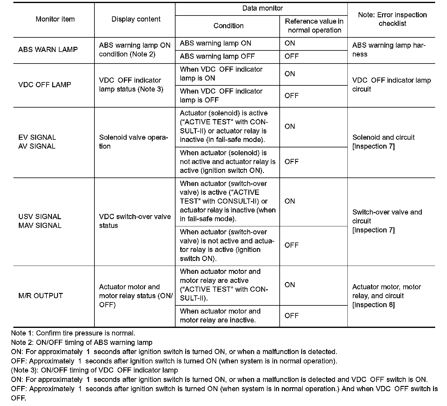 STANDARDS BY CONSULT-II CAUTION: Items displayed are data calculated by control unit and may indicate normal operation even if output circuit (harness) is open or shorted.