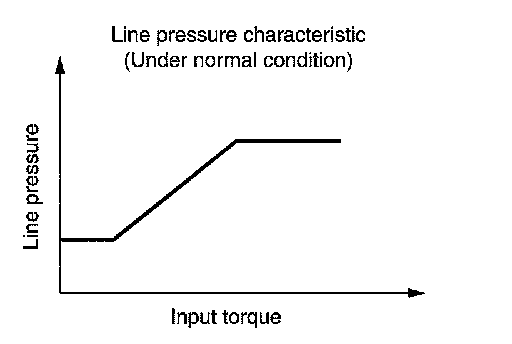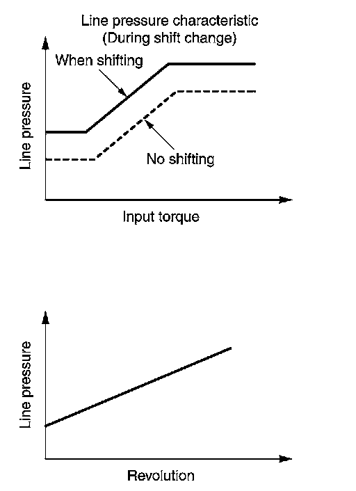 The necessary and adequate line pressure for shift change is set. For this reason, line pressure pattern setting corresponds to input torque and gearshift selection. Also, line pressure characteristic is according to engine speed, during engine brake operation.