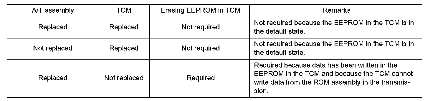^ When replacing A/T assembly or TCM, refer to the pattern table and erase the EEPROM in the TCM if necessary.