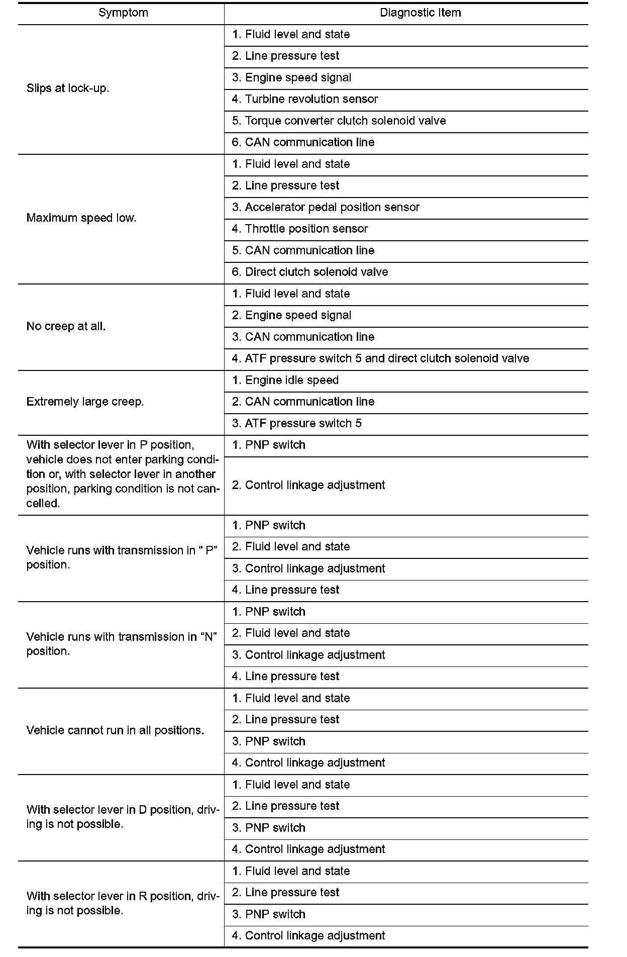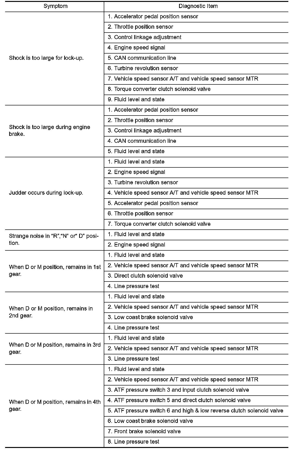 Symptom Chart The diagnostics item numbers show the sequence for inspection. Inspect in order from Item 1.