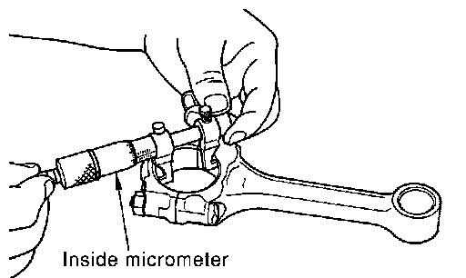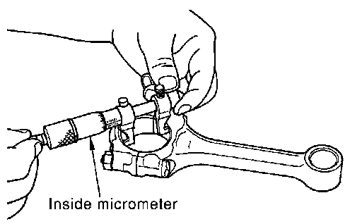 Install the connecting rod cap without the connecting rod bearing installed. After tightening the connecting rod nut to the specified torque, measure the connecting rod large end inner diameter using an inside micrometer.