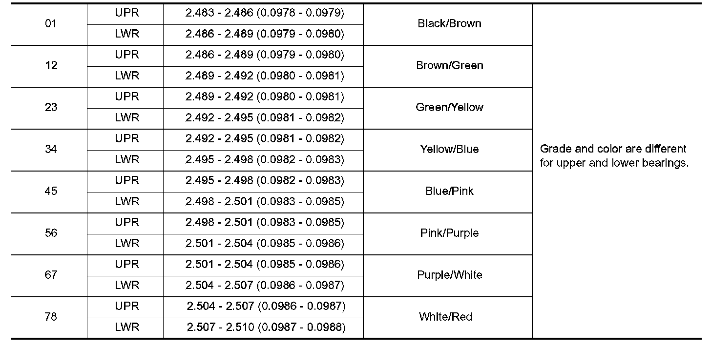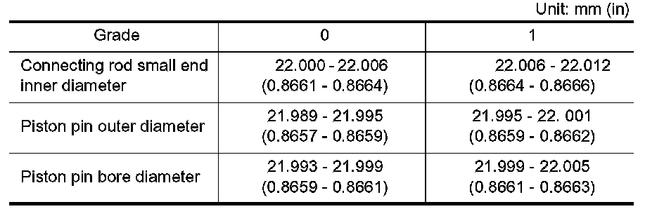 ^ Refer to "Connecting Rod Bushing Oil Clearance (Small End)" for the values for each grade at the plant.