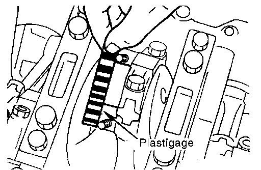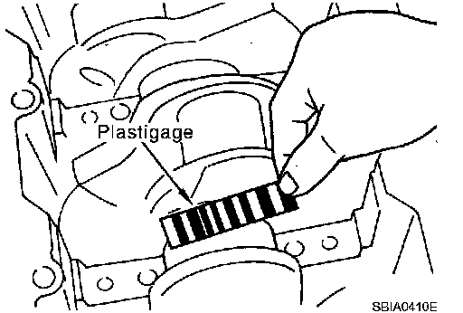 ^ Cut a plastigage slightly shorter than the bearing width, and place it in crankshaft axial direction, avoiding oil holes