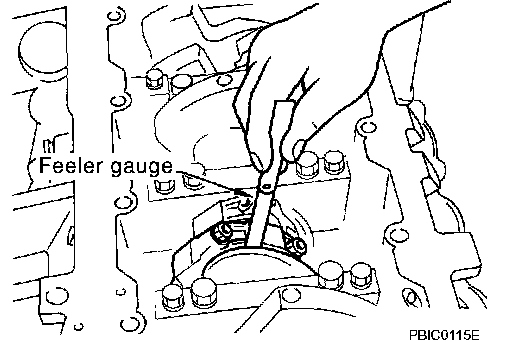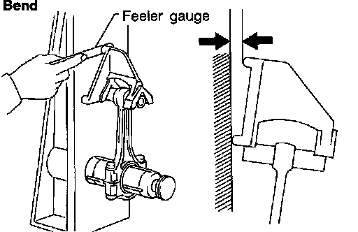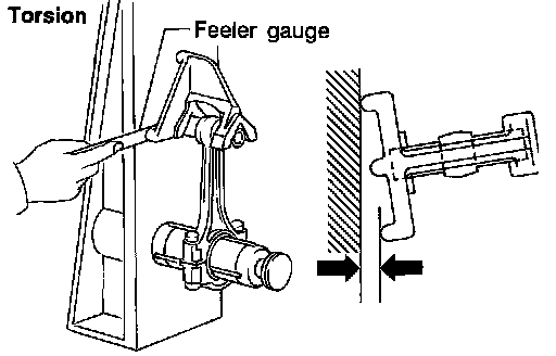 ^ Measure side clearance between connecting rod and crankshaft arm with feeler gauge.