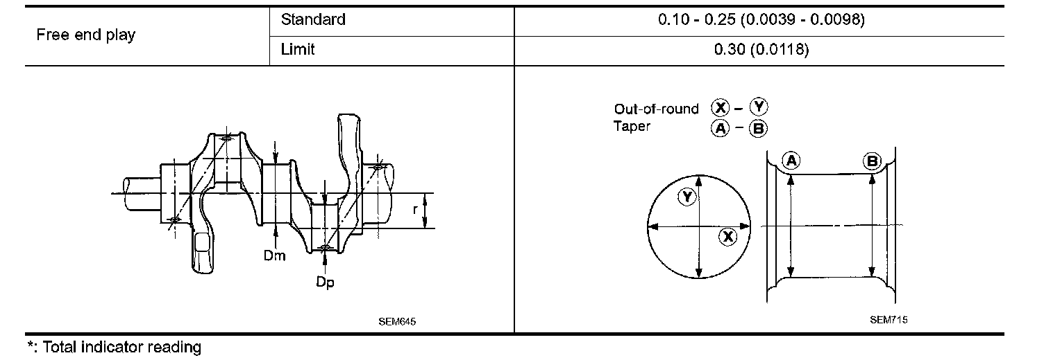 No. 2, 3, and 4 journals: 0.027 mm (0.0011 inch)