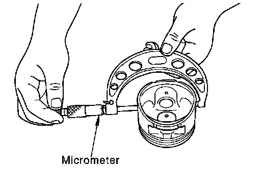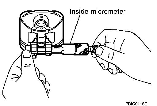 Measure the inner diameter of piston pin bore with an inside micrometer.