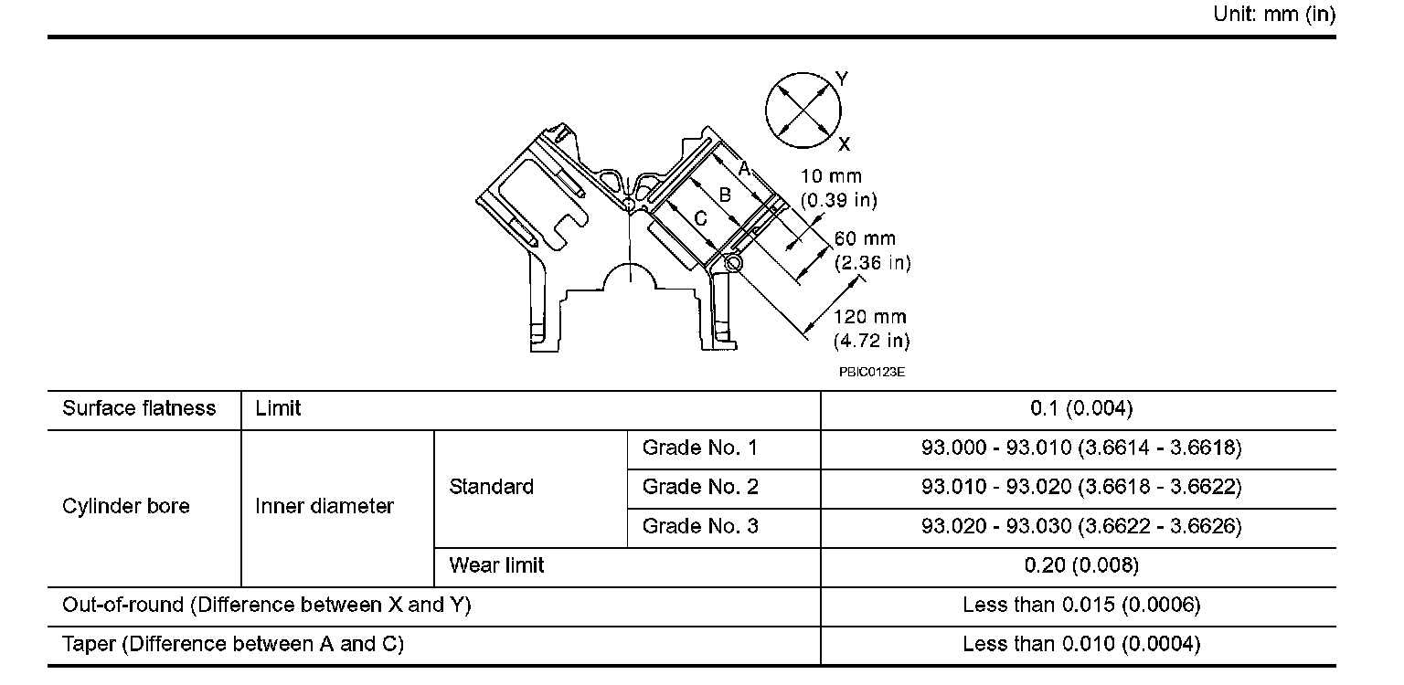 Standard: 92.980 - 93.010 mm (3.6606 - 3.6618 inch)