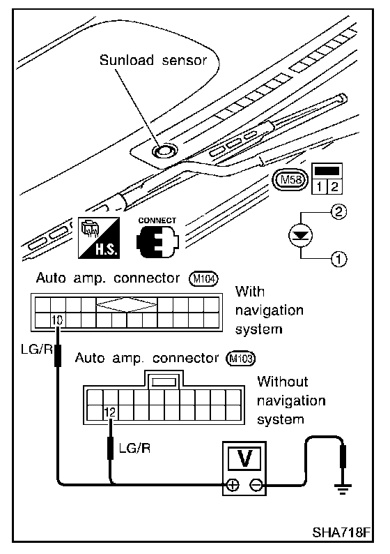 If NG, replace sunload sensor.