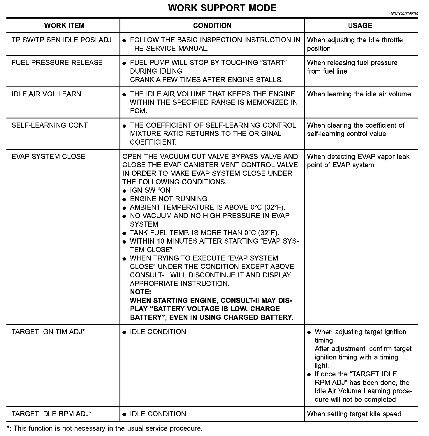 Work Support Mode: