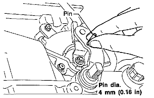 4. Insert pin into adjustment holes in both PNP switch and manual shaft of A/T assembly as near vertical as possible.