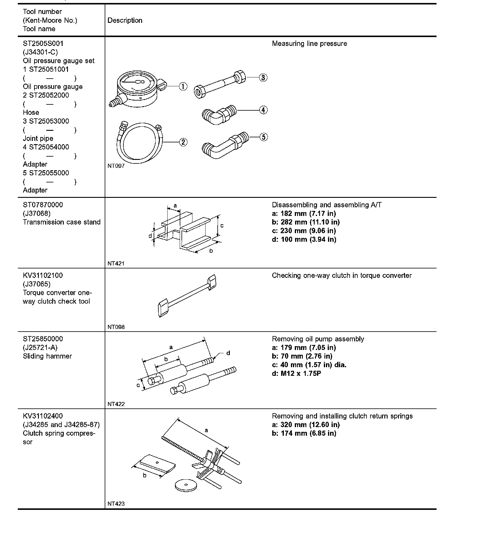 The actual shapes of Kent-Moore tools may differ from those of special service tools illustrated here.