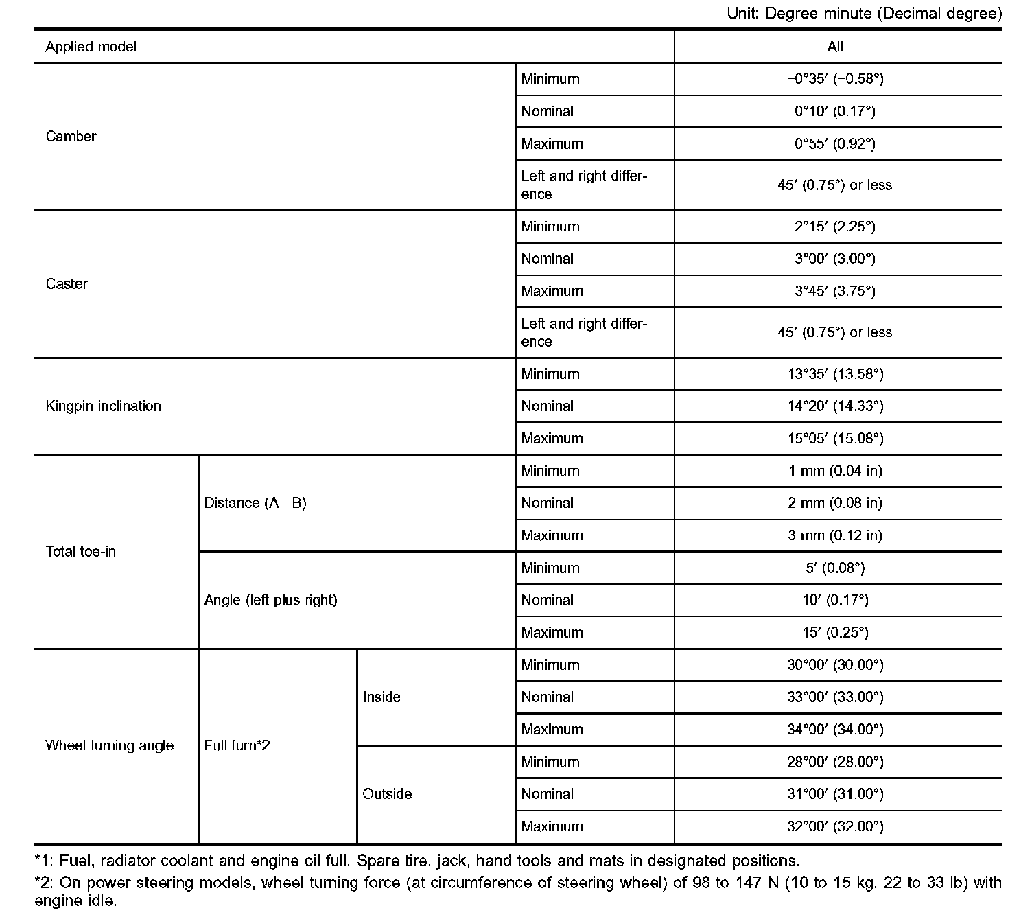 WHEEL ALIGNMENT (UNLADEN *1):
