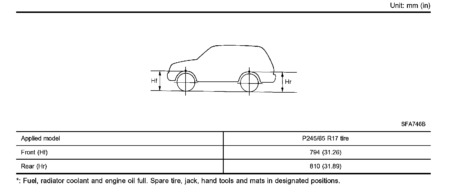 WHEEL ARCH HEIGHT [RIDE HEIGHT] (UNLADEN*):