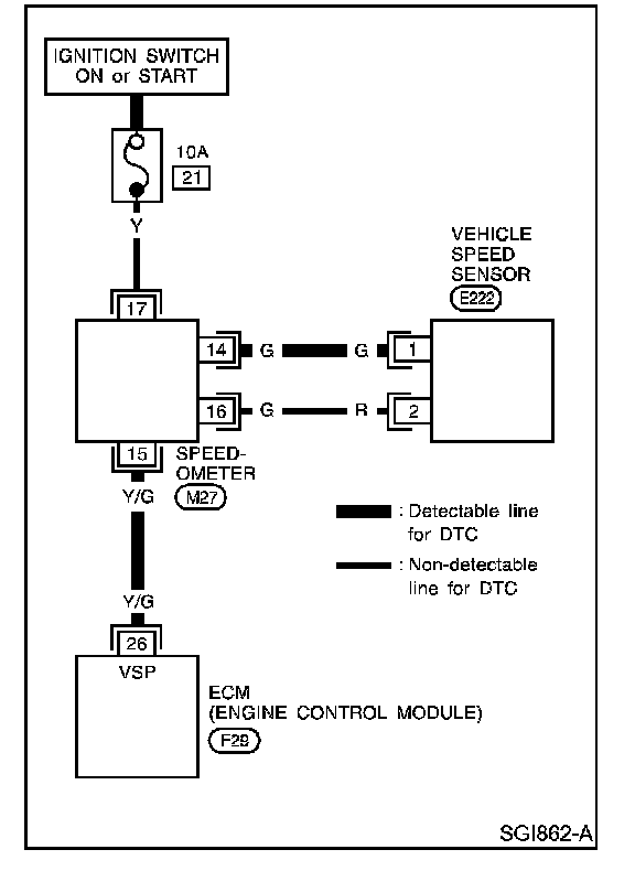 - A line with less weight (thinner line) represents "a non-detectable line for DTC". "A non-detectable line for DTC" is a circuit in which ECM cannot detect its malfunctions with the on board diagnostic system.
