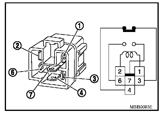 2. Check continuity between relay terminals 3 and 4, 6 and 7 under the given conditions.