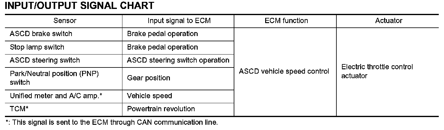 When the COAST/SET switch is pressed during cruise control driving, decrease vehicle set speed until the switch is released. And then ASCD will keep the new set speed.