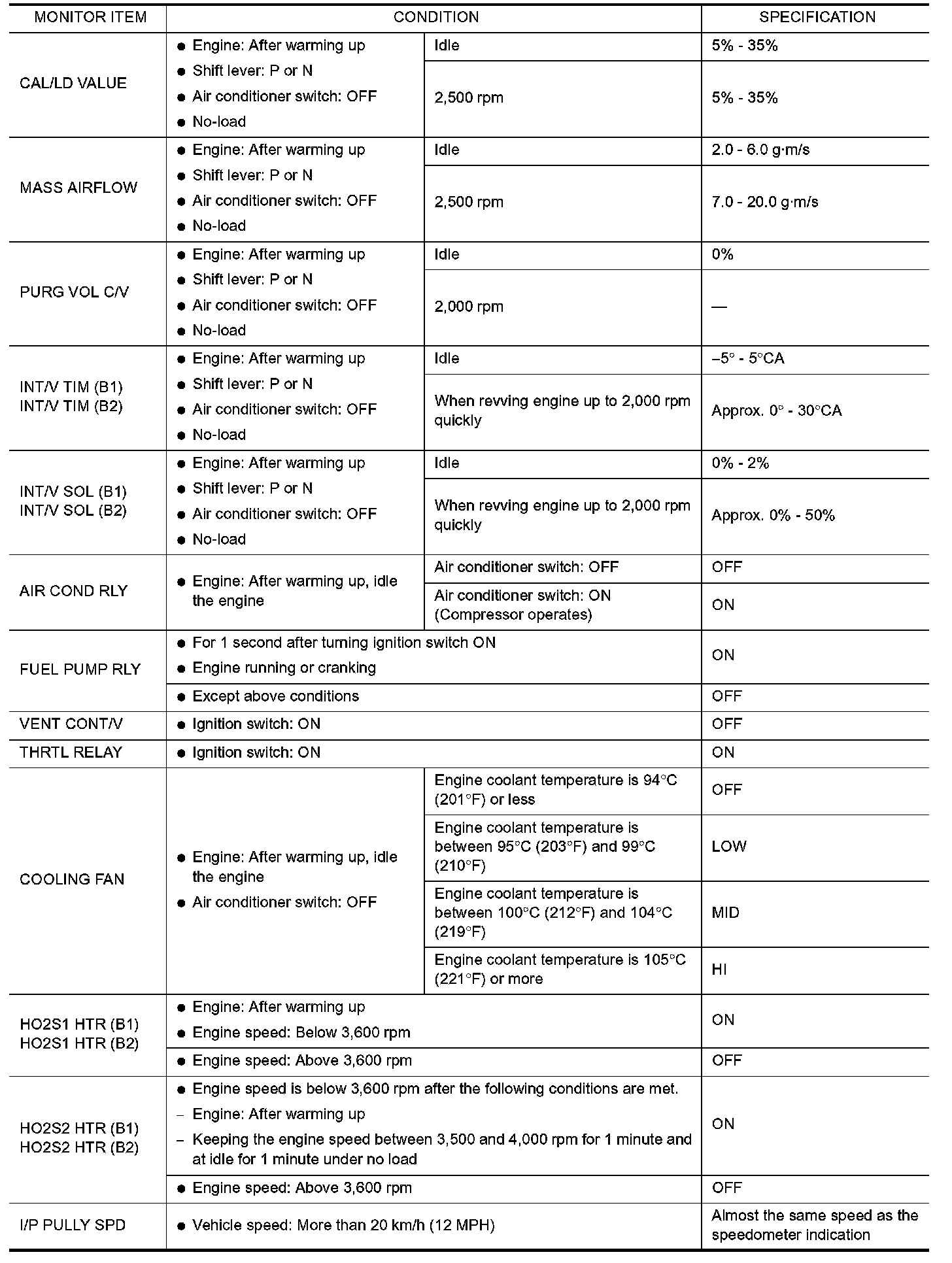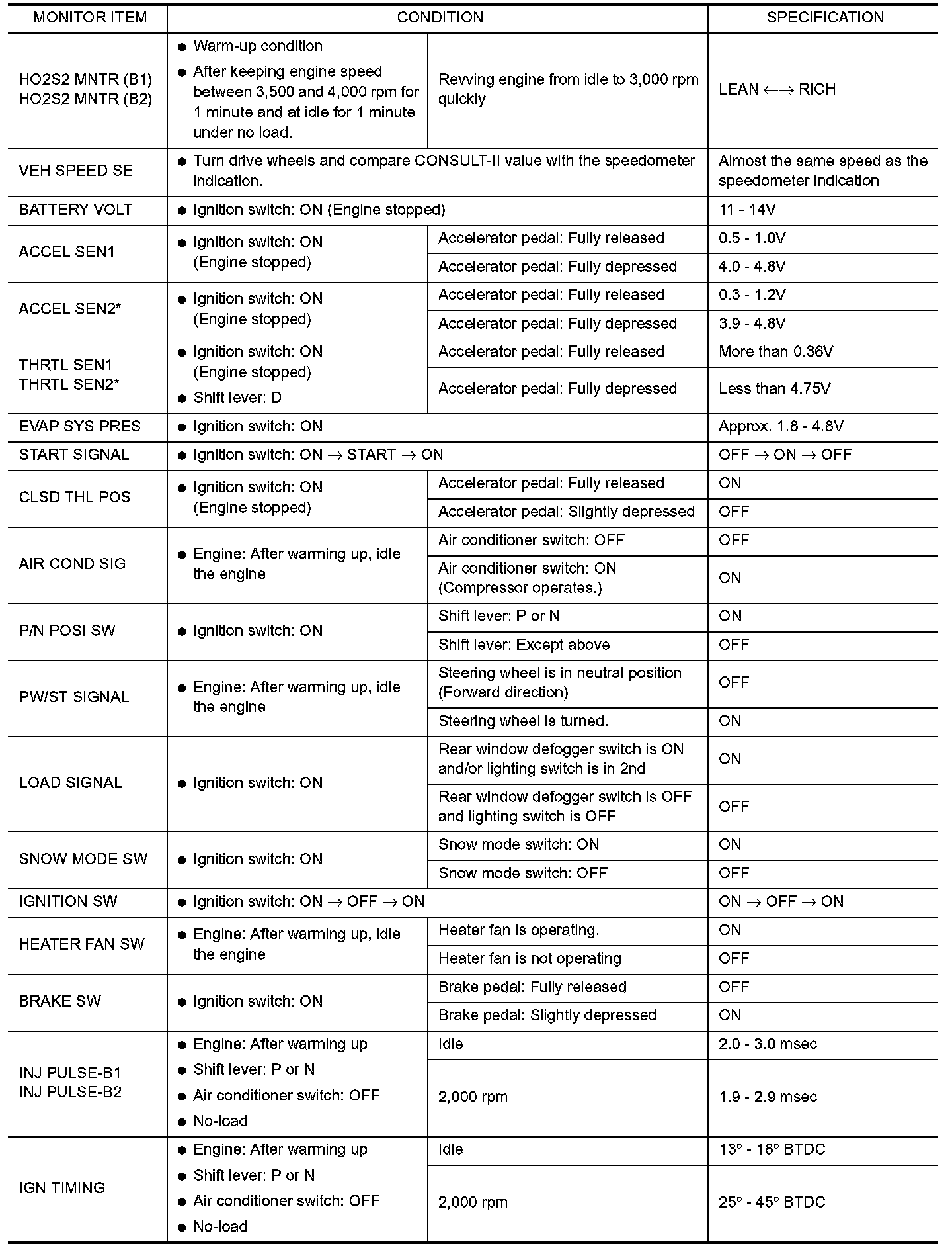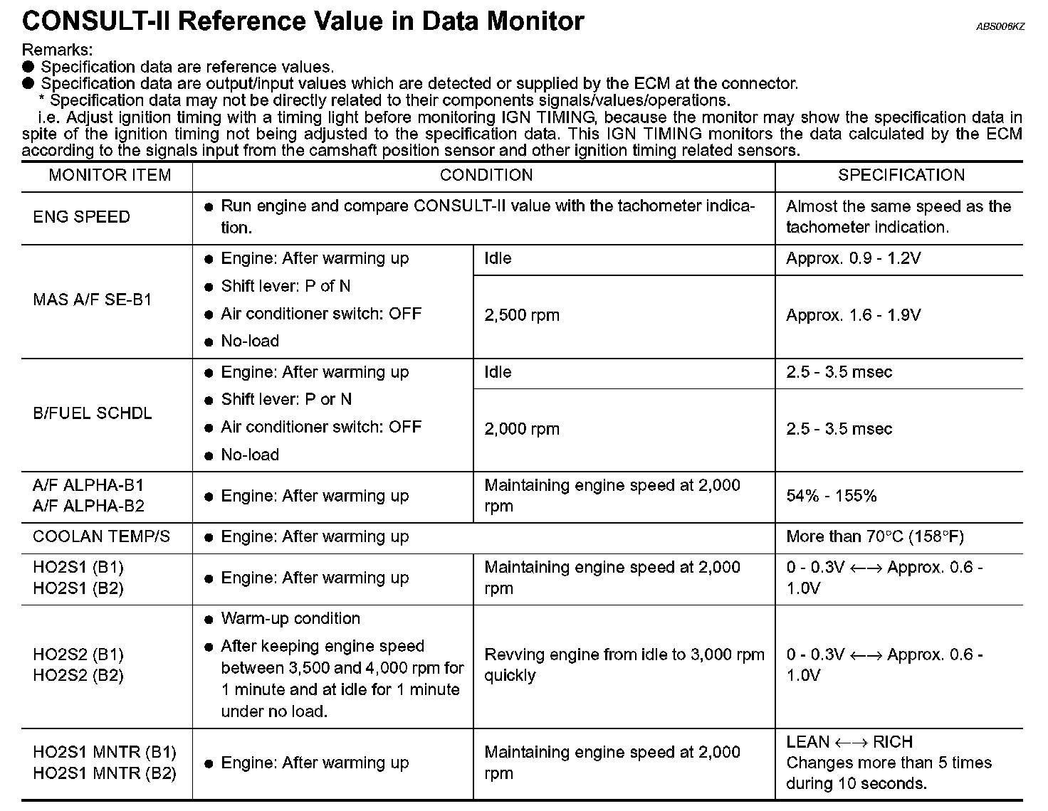 CONSULT-II Reference Value in Data Monitor Mode
