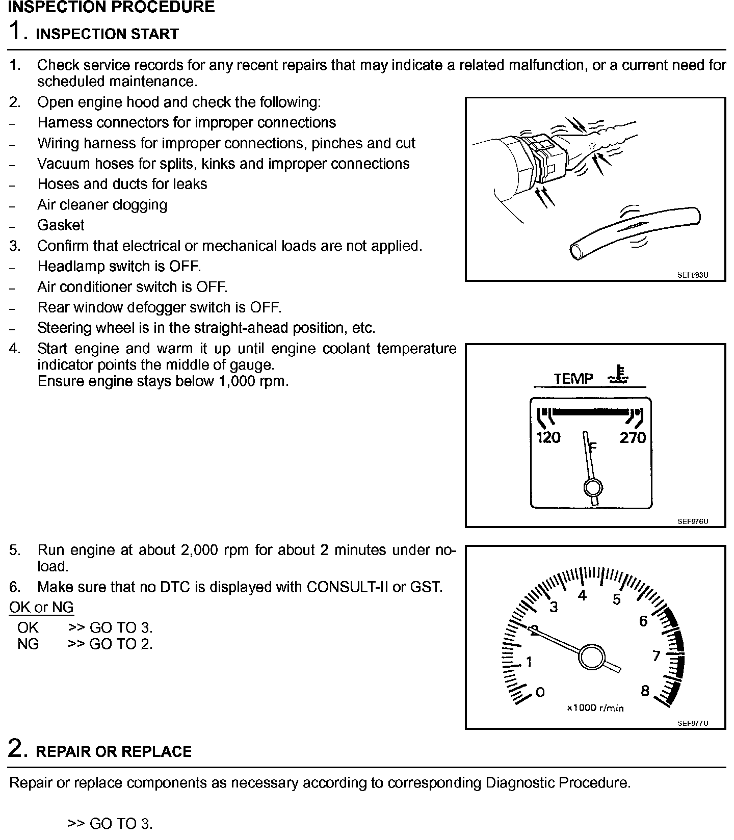 2. On air conditioner equipped models, checks should be carried out while the air conditioner is OFF.