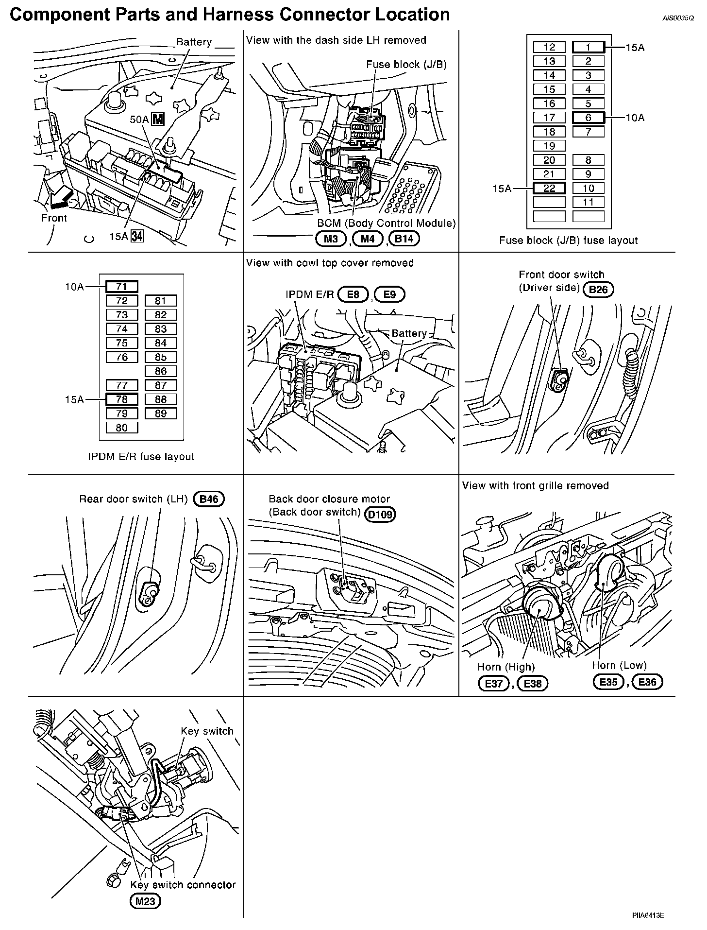 Component Parts And Harness Connector Location:
