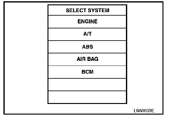 If "BCM" is not indicated, go to "CONSULT-II Data Link Connector (DLC) Circuit". Diagnostic Aids