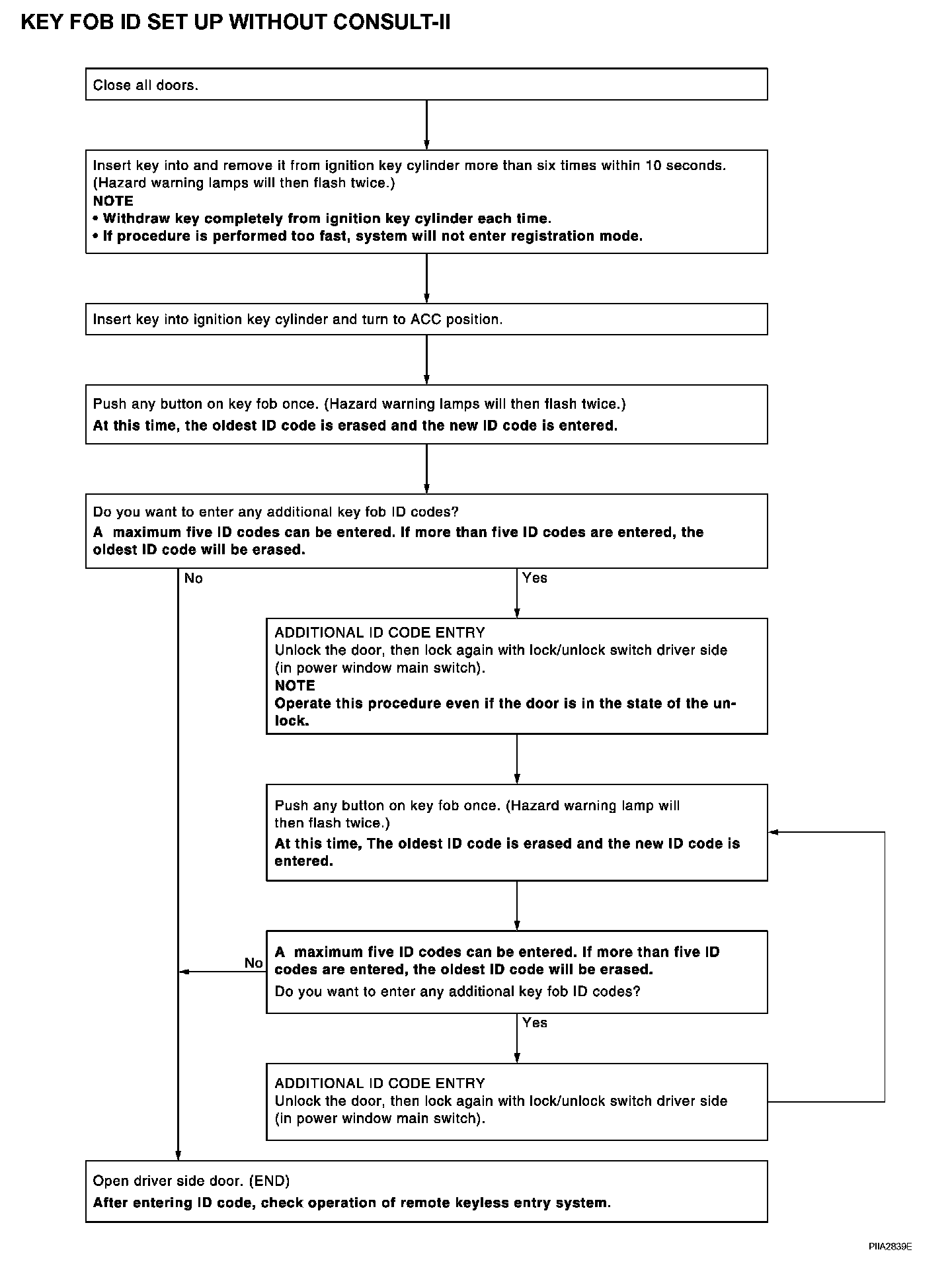 KEY FOB ID SET UP WITHOUT CONSULT-II