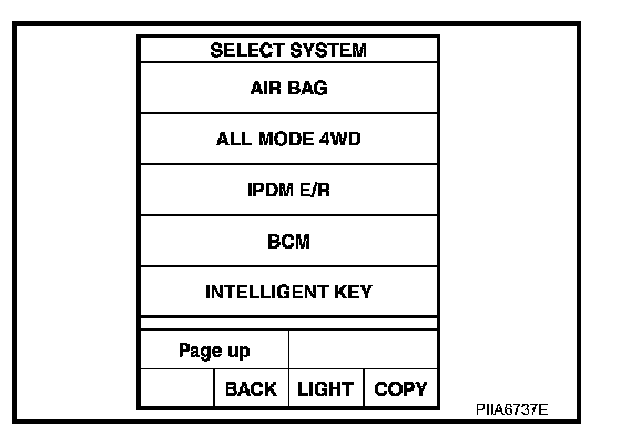 5. Touch "INTELLIGENT KEY" on "SELECT SYSTEM" screen.