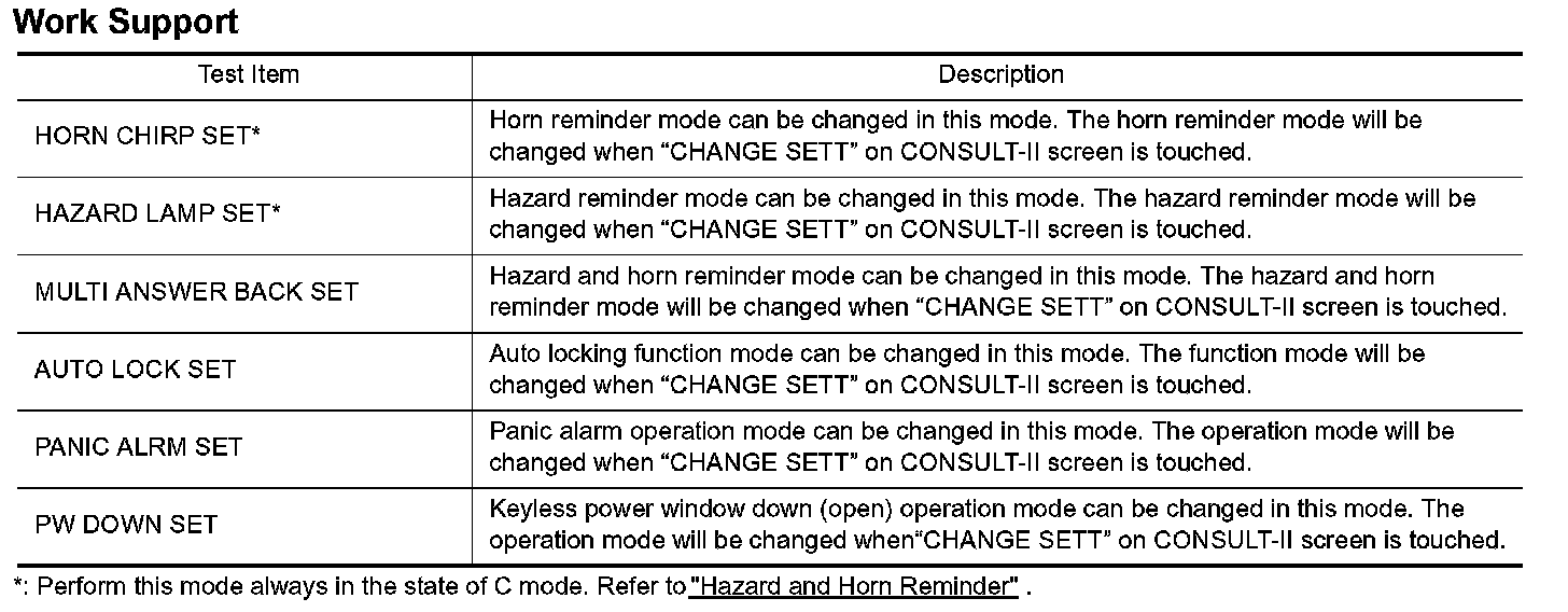 CONSULT-II APPLICATION ITEMSWork Support